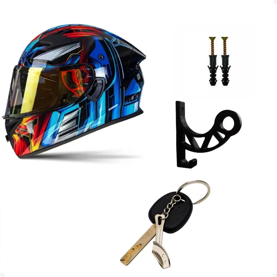 Kit 06 Suportes de Parede para Capacete, Acessórios e Mais - Ganchos Fixos para Organizar Seu Ambiente Ganchos Práticos
